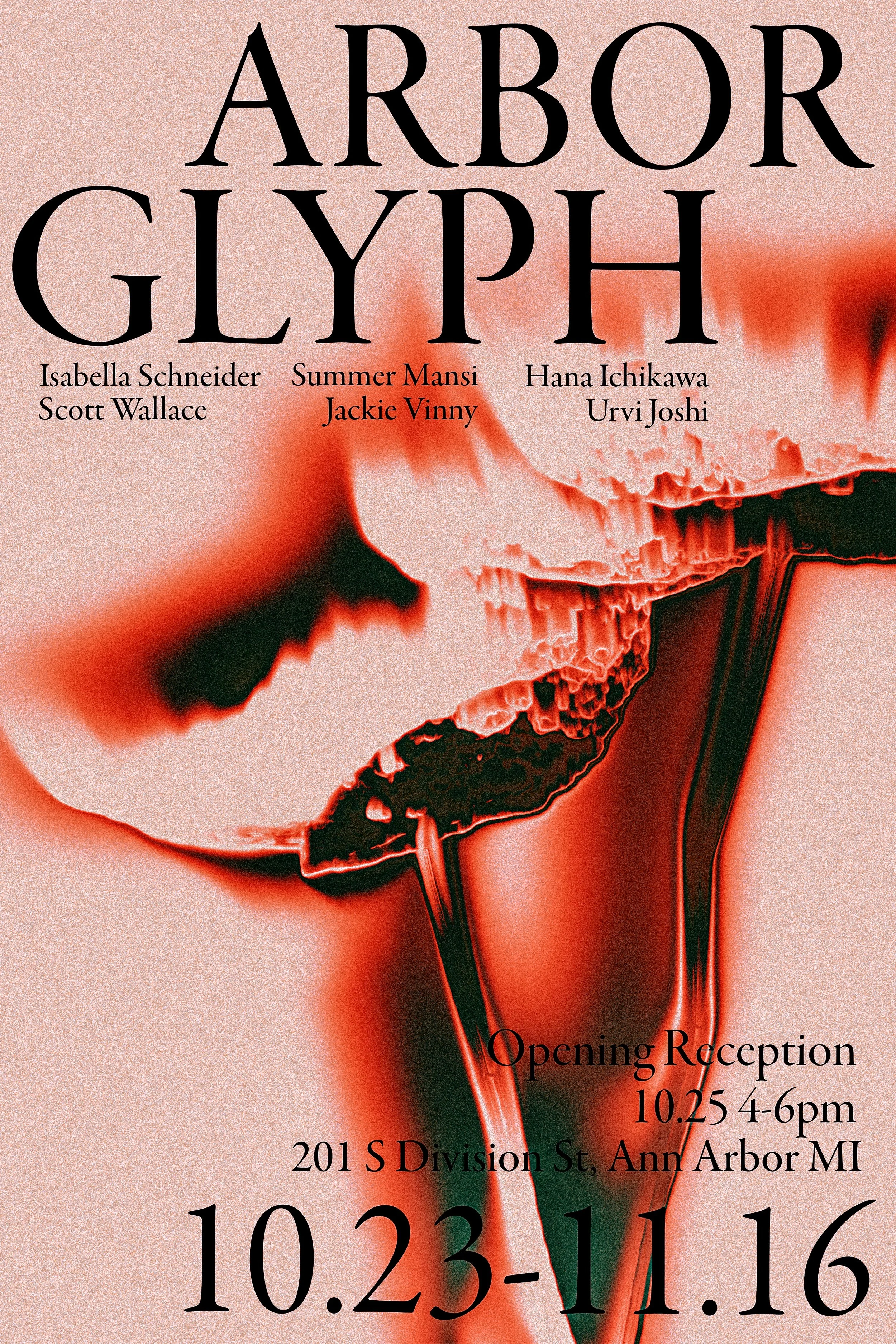 This flyer was created for the Exhibition “Arbor Glyph” an exhibition based on interpretation and nature held at the University of Michigan Stamps Gallery . Through using TouchDesigner, a creative programming software, I made the background image/video, experimenting with various color schemes until I arrived at the final iteration. This allowed me to visually express the essence of nature through dynamic elements. The flexibility of the software gave me the freedom to explore multiple iterations, ensuring that the final design truly captured the theme. It was a rewarding experience that showcased how technology can amplify creative concepts.
